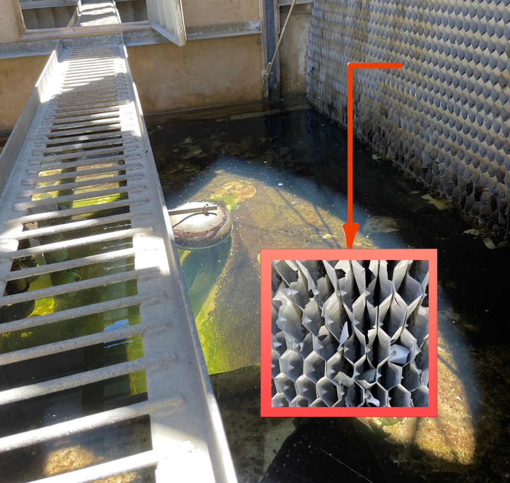 ดังนั้น หากฟิลลิ่งชำรุด หมายความว่าจะทำให้การระบายความร้อนของ cooling tower ทำได้ไม่เต็มที่ ซึ่งนั่นก็แปลว่า Chiller จะต้องใช้พลังงานที่มากกว่าเดิมด้วย